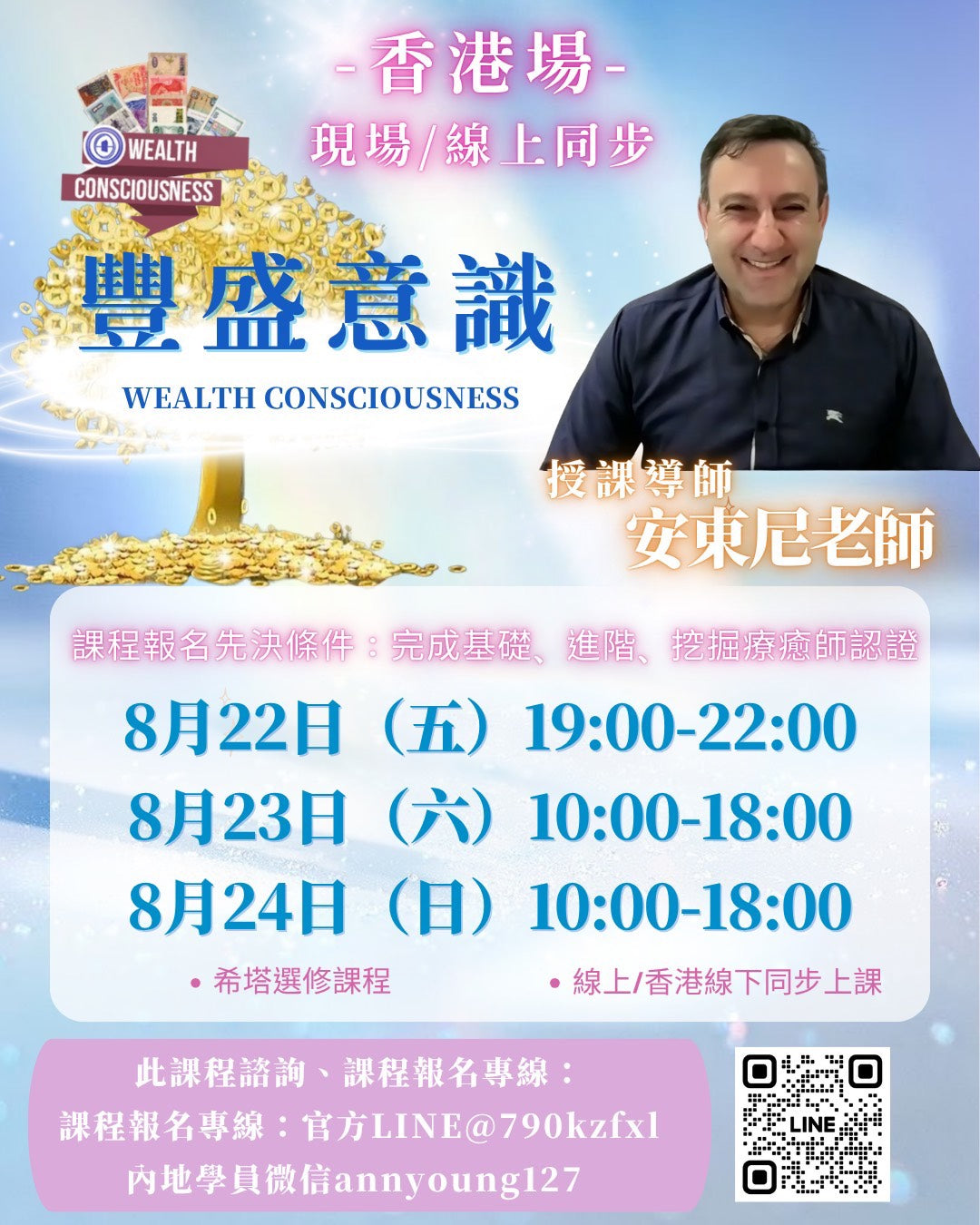8/22 19:00-22:008/23-24 10:00-18:00安東尼老師 豐盛意識 香港場線下/線上同步